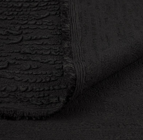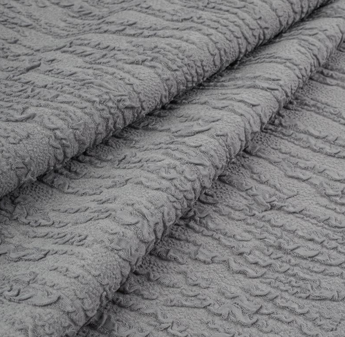 Жатая ткань с рельефной поверхностью. Этот материал сочетает в себе превосходную драпируемость и изящную фактурность, делая его идеальным выбором для создания утонченных и стильных образов.