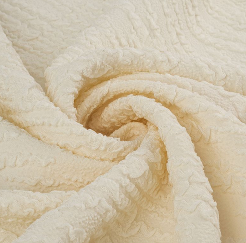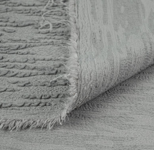 Жатая ткань с рельефной поверхностью. Этот материал сочетает в себе превосходную драпируемость и изящную фактурность, делая его идеальным выбором для создания утонченных и стильных образов.