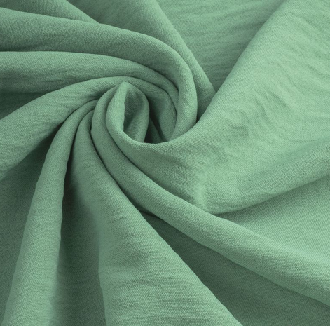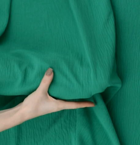 Легкая, но вместе с тем прочная гладкокрашенная ткань с рельефной поверхностью. Материал с льняной структурой и эффектом крэш. Приятная и мягкая на ощупь, обладает матовым блеском и образует на изделиях красивые складки.