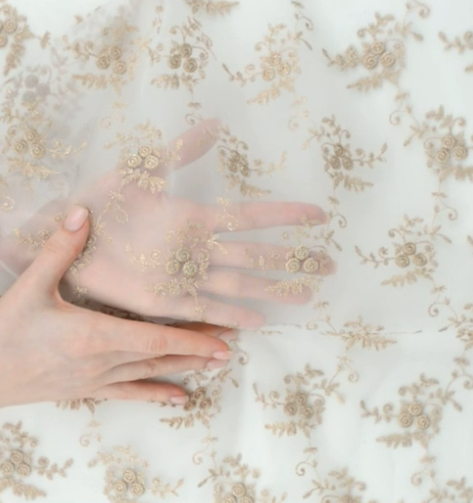 Вышивка на сетке, бежевый