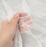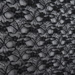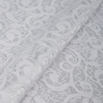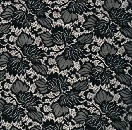 Тонкий растяжимый материал с цветочными мотивами. Матовые элементы рисунка чередуются с глянцевыми, создавая мягкие переливы света по всей поверхности полотна. Кромка фестончатая отрезная.
