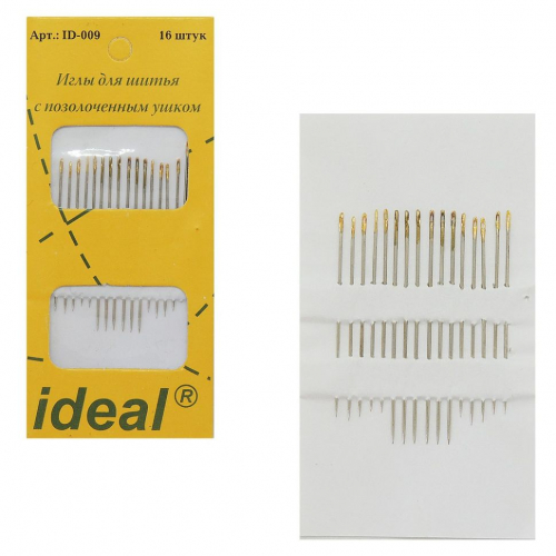 Иглы IDEAL арт. ID-009 с позолоченным ушком (упак.16 игл)