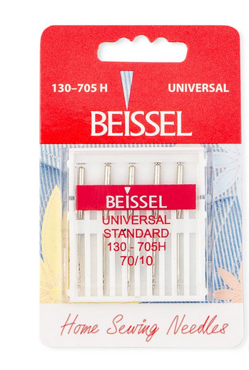Универсальные иглы Beissel №70/10 применяются при работе с различными видами тканей, такими как лен, бязь, хлопок, батист, поплин и др
