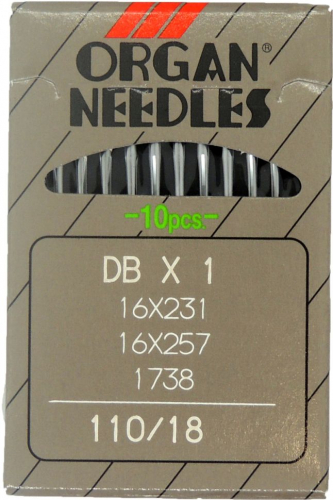 Иглы Organ для прямострочных машин с тонкой колбой (DB*1/110 SES)ПШМ № 110/18 SES, уп. 10 шт