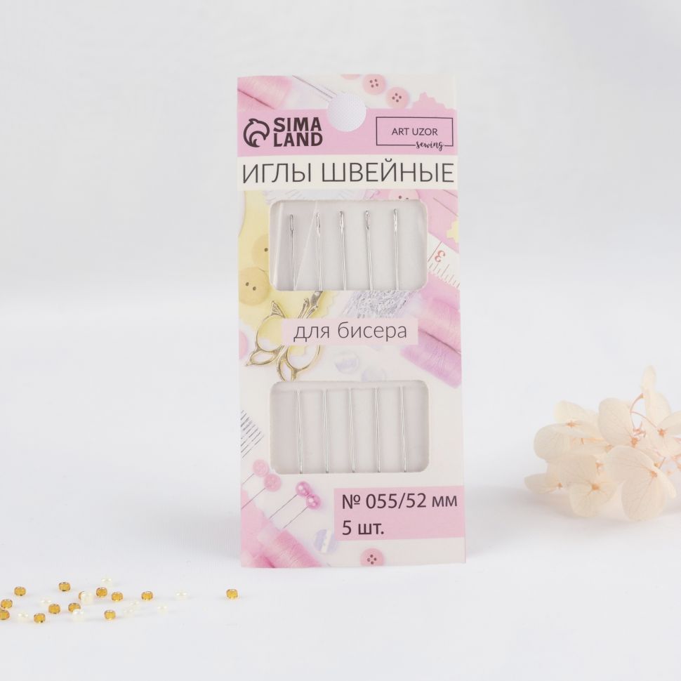 Иглы швейные для бисера, d=0,55 мм, 5.2 см, 5 шт