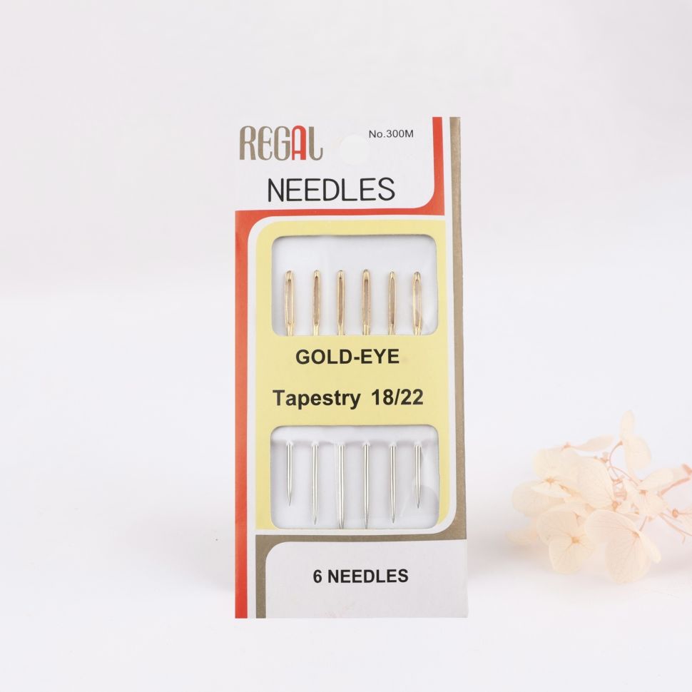 Иглы швейные для гобелена №18/22, d=1,15 мм, 4,2 - 4,6 см, с золотым ушком, 6 шт