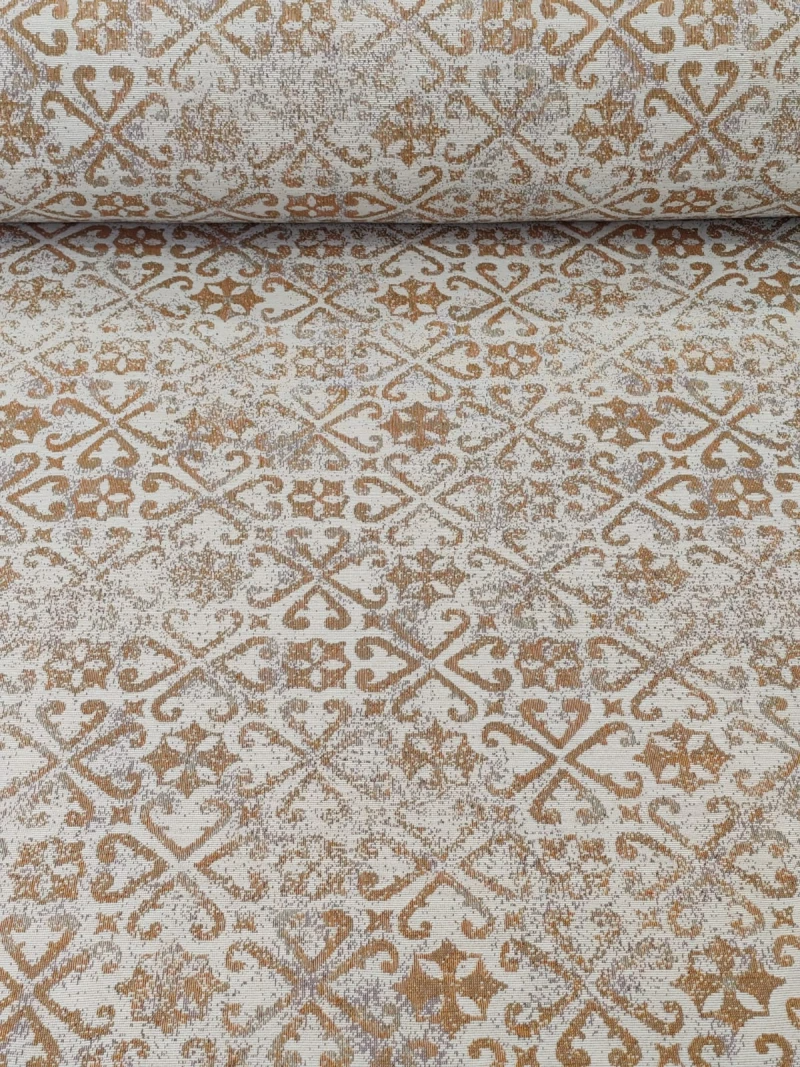 Рисунок создается переплетением нитей различных цветов и фактуры. Состав ткани: хлопок ( дающий фактуру и приятную тактильность ) и синтетические нити ( придающие износостойкость ). Плотность гобелена 410 г на кв.метр.