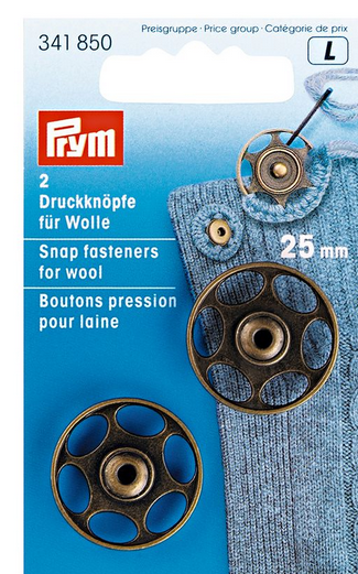 Кнопка пришивная "PRYM" 341850 для вязаных изд. латунь d 25 мм 2 шт. состаренная латунь