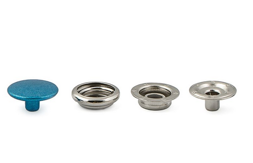 Металлические нержавеющие установочные открытые кнопки из 4-х частей для тонких тканей. В комплект входит устройство для установки.
