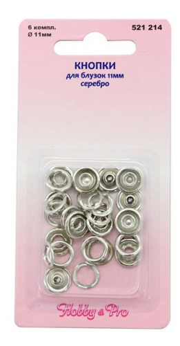 Кнопки для блузок и другой легкой одежды, серебро, 11 мм, упак./6 наборов, Hobby&Pro