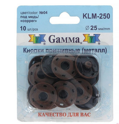 Кнопки пришивные KLM-250 металл d 25 мм 10 шт. №04 под медь