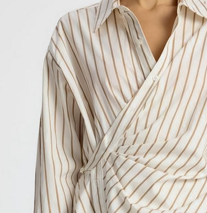"Лён" рубашечный "Луис" полоска D1, белый / коричневый