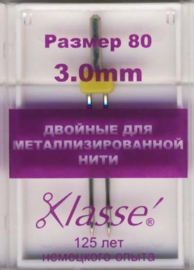 Двойные - идеально подходят для шитья фамильных вещей и декоративной отстрочки. Размер 2 мм, 2.5 мм, 3 мм, 4 мм и 6 мм указывают расстояние между иглами. В наличие есть иглы двойные для трикотажа, двойные для стрейча и двойные для джинсы и металлизированной нити. Двойные иглы закрепленны в полиамидном блоке, и поэтому их необходимо использовать при низкой скорости и не долго.