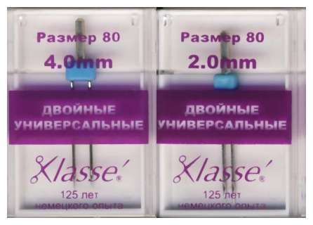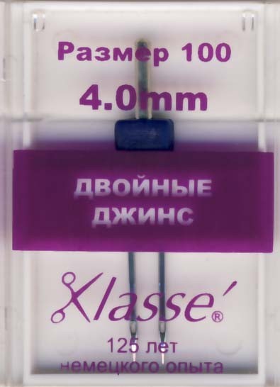 Двойные - идеально подходят для шитья фамильных вещей и декоративной отстрочки. Размер 2 мм, 2.5 мм, 3 мм, 4 мм и 6 мм указывают расстояние между иглами. В наличие есть иглы двойные для трикотажа, двойные для стрейча и двойные для джинсы и металлизированной нити. Двойные иглы закрепленны в полиамидном блоке, и поэтому их необходимо использовать при низкой скорости и не долго.