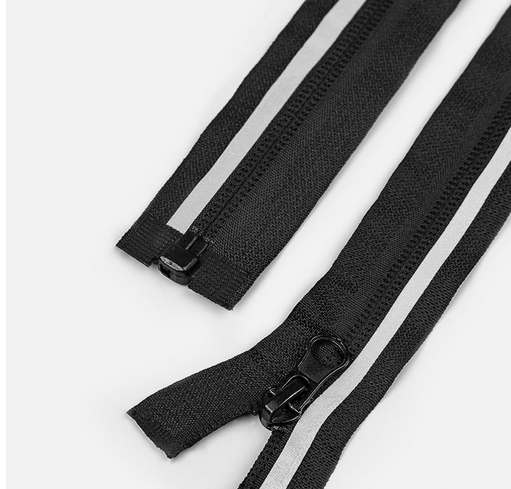 Молния витая со светоотражающей полосой. Используется в швейной промышленности при изготовлении спортивной одежды для взрослых и детей, сумок, различных аксессуаров.