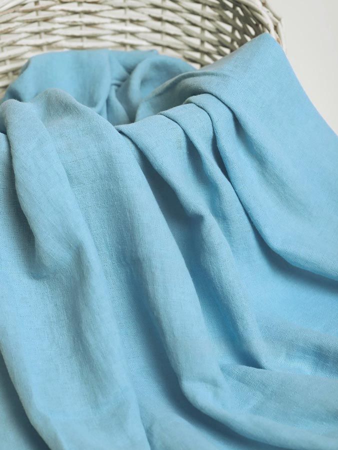 Ширина ткани: 140 см; Материал ткани: муслин; Состав: 100% хлопок; Плотность: 120± 5 г/м2; Тип изделия: ткани на отрез; Цвет: голубой