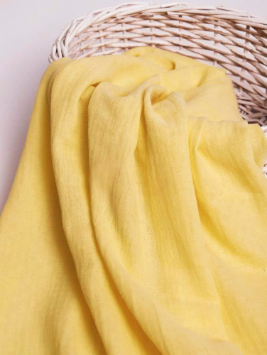 Ширина ткани: 140 см; Материал ткани: муслин; Состав: 100% хлопок; Плотность: 120± 5 г/м2; Тип изделия: ткани на отрез; Цвет: желтый