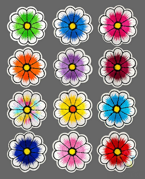 Аппликации термо в виде цветов, вышитые гладью на фетре.