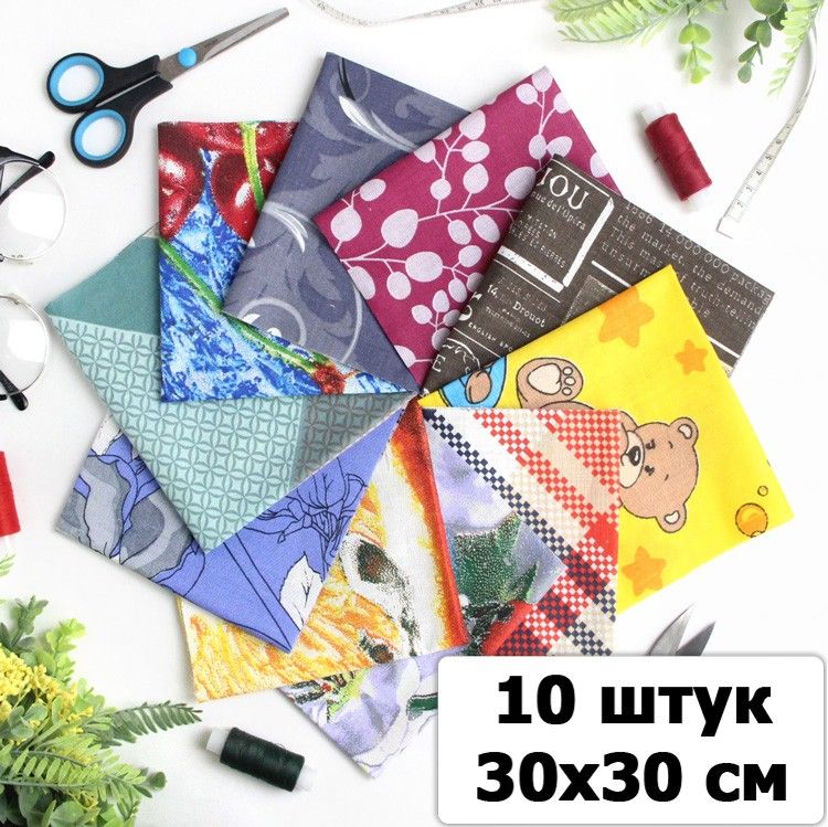 Набор ткани для пэчворка и шитья Ассорти 30х30 (10 шт)