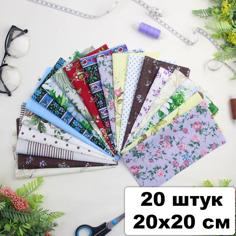 Набор ткани для пэчворка и шитья Ассорти, ситец, 20х20 (20 шт)