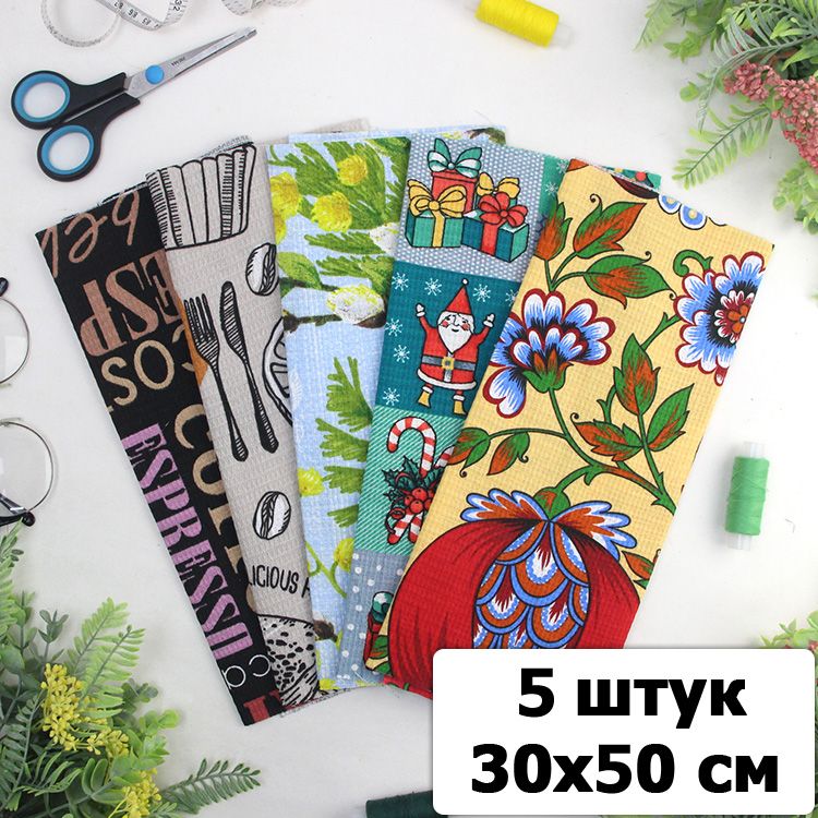 Набор ткани для пэчворка и шитья Ассорти, вафельное полотно, 30х50 (5 шт)
