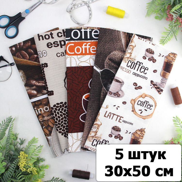 Набор ткани для пэчворка и шитья Кофейный, вафельное полотно, 30х50 (5 шт)
