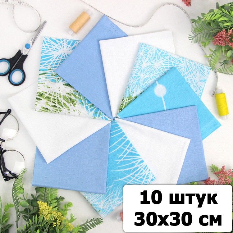 Набор ткани для пэчворка и шитья Лазурное небо 30х30 (10 шт)