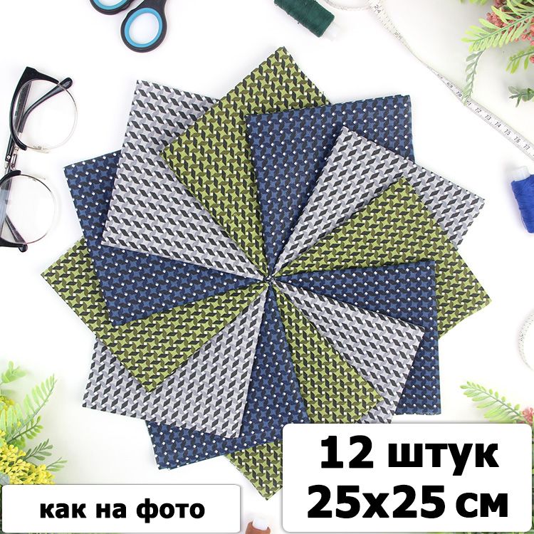 Набор ткани для пэчворка и шитья Мужской 25х25 (12 шт)