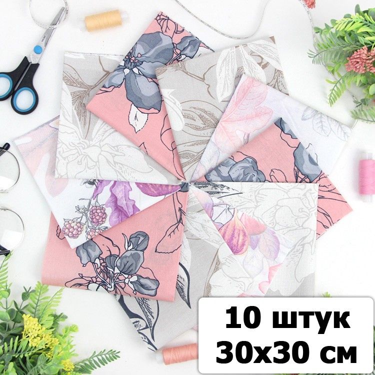 Набор ткани для пэчворка и шитья Нежность 30х30 (10 шт)