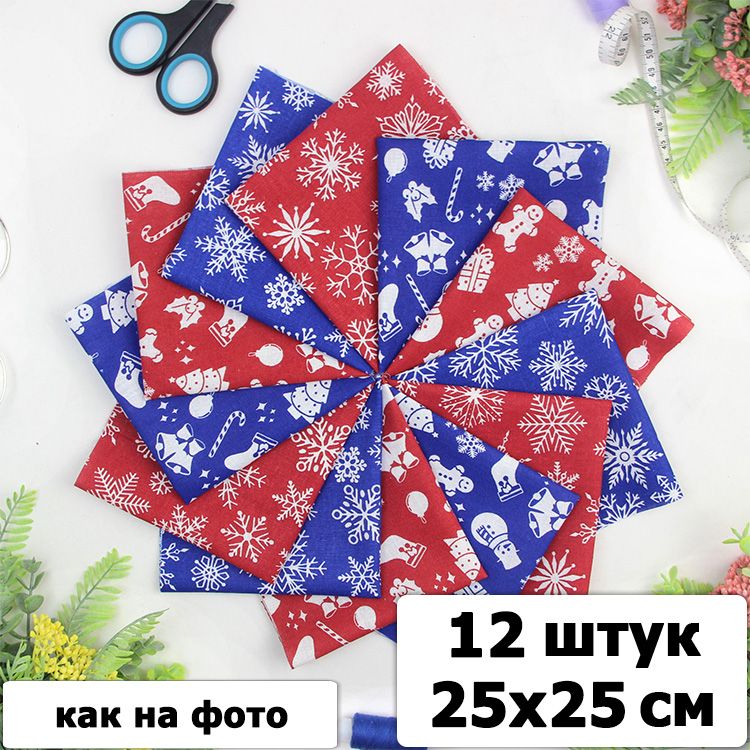 Набор ткани для пэчворка и шитья Новогодний 25х25 (12 шт)