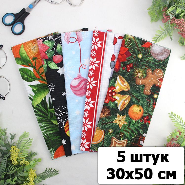 Набор ткани для пэчворка и шитья Новый год, вафельное полотно, 30х50 (5 шт)
