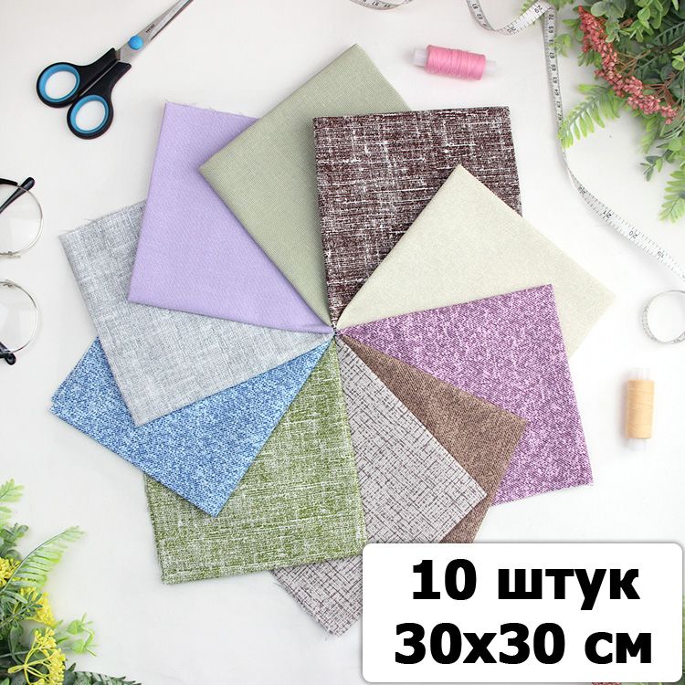 Набор ткани для пэчворка и шитья Однотонный, рогожка, 30х30 (10 шт)