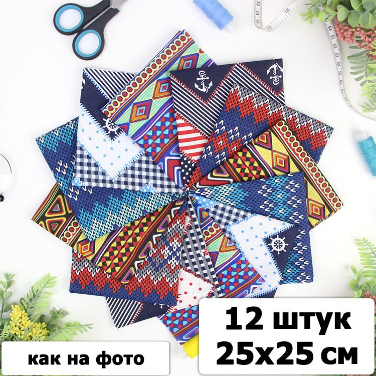 Набор ткани для пэчворка и шитья Орнамент 25х25 (12 шт)