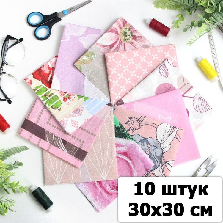 Набор ткани для пэчворка и шитья Оттенки светло-красного 30х30 (10 шт)