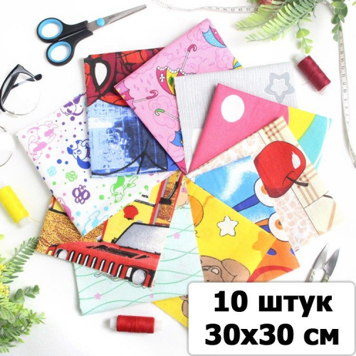 Набор ткани для пэчворка и шитья Оттенки светло-зеленого 30х30 (10 шт)