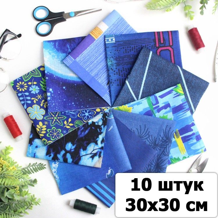 Набор ткани для пэчворка и шитья Оттенки темно-синего 30х30 (10 шт)