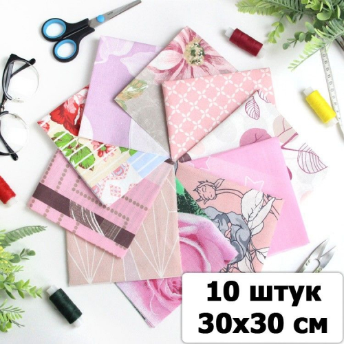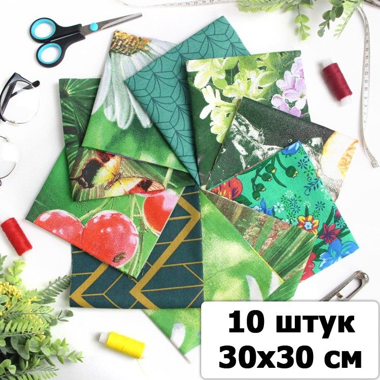 Набор ткани для пэчворка и шитья Оттенки темно-зеленого 30х30 (10 шт)
