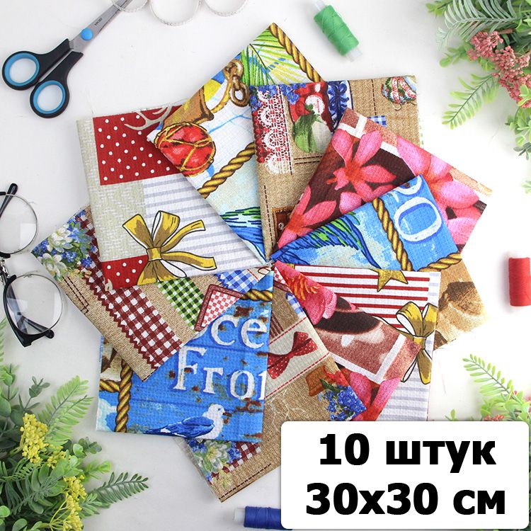 Набор ткани для пэчворка и шитья Творчество, вафельное полотно, 30х30 (10 шт)