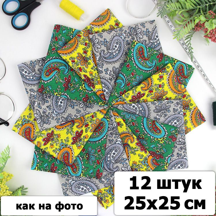 Набор ткани для пэчворка и шитья Восточный огурец 25х25 (12 шт)