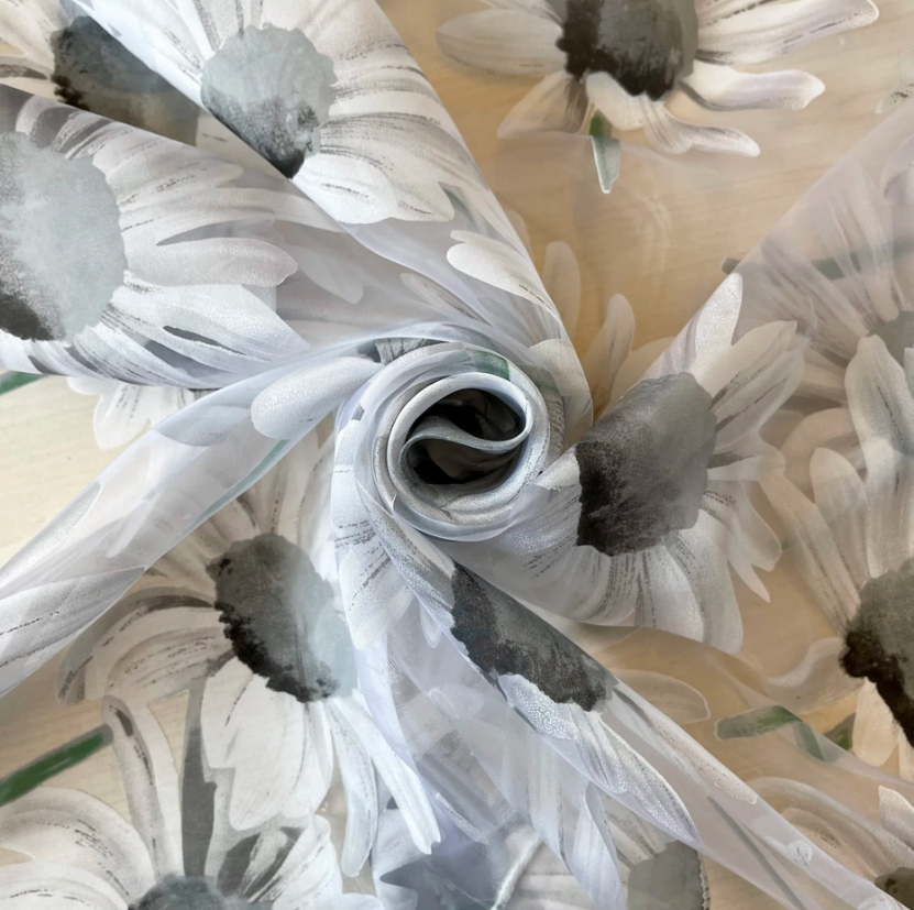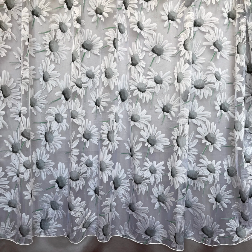 -50% Органза печать Ромашки CH1 серый 280 см