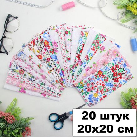 Набор ткани для пэчворка и шитья Цветы красные, ситец, 20х20 (20 шт)