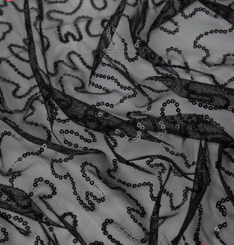 Пайетка на сетке "Змейка", черный