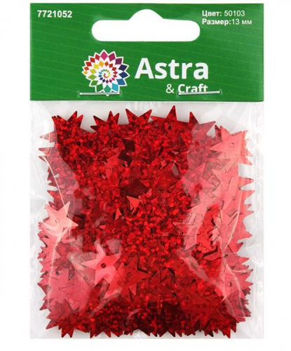 Пайетки "Звездочки" 13 мм, "Астра" 10 г (50103 красный голограмма)