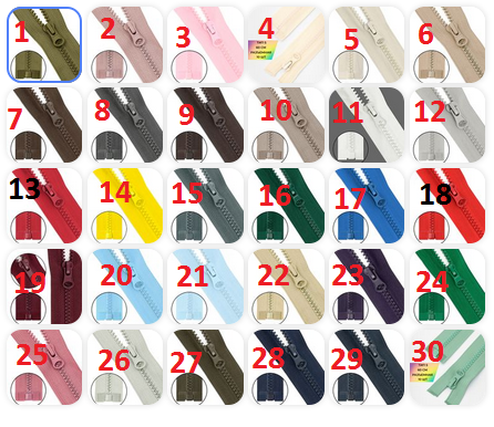 Молния тракторная разъемная с пластиковыми зубьями и металлическим бегунком в цвет молнии.