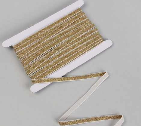 Резинка с глиттером, 10 мм, 10±1м, цвет белый/золотой