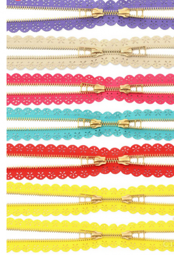 Декоративная металлическая молния с перфорацией и фигурными бегунками. Комплектация цветов молний в наборе может отличаться.