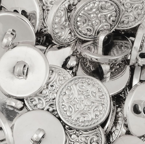 Круглые пластиковые пуговицы на ножке с рельефным рисунком.