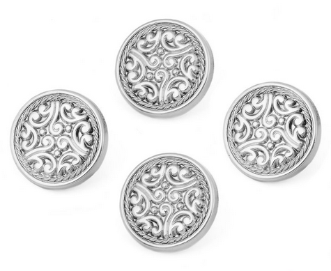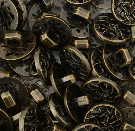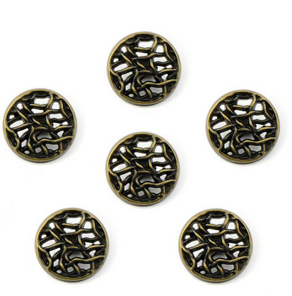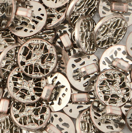 Круглые пуговицы с ободком и фактурным рисунком на ножке прекрасно дополнят ваше изделие.