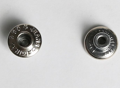 Яркой позицией в ассортименте джинсовых пуговиц является Представленная пуговица выполнена из металла с гальваническим покрытием цвета имеет интересный дизайн с отверстием и надписью «JEANS ORIGINAL & CO» по полю фурнитуры. Диаметр пуговицы -14 мм. Пуговица крепится к изделию с помощью гвоздя, крепление фиксированное. Для использования такой фурнитуры в производстве одежды, необходимо приобрести установочное оборудование: пресс и пуансоны.