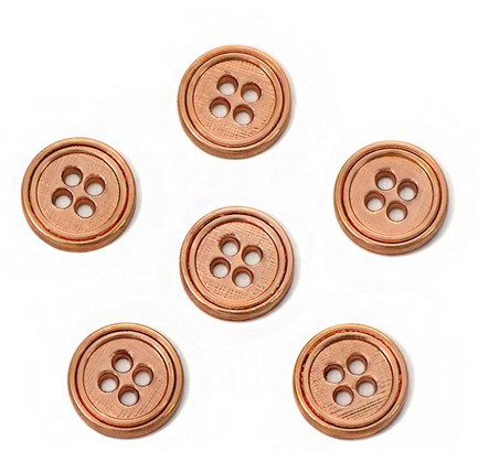 Круглые пластиковые пуговицы под металл, с ободком, на четыре прокола.